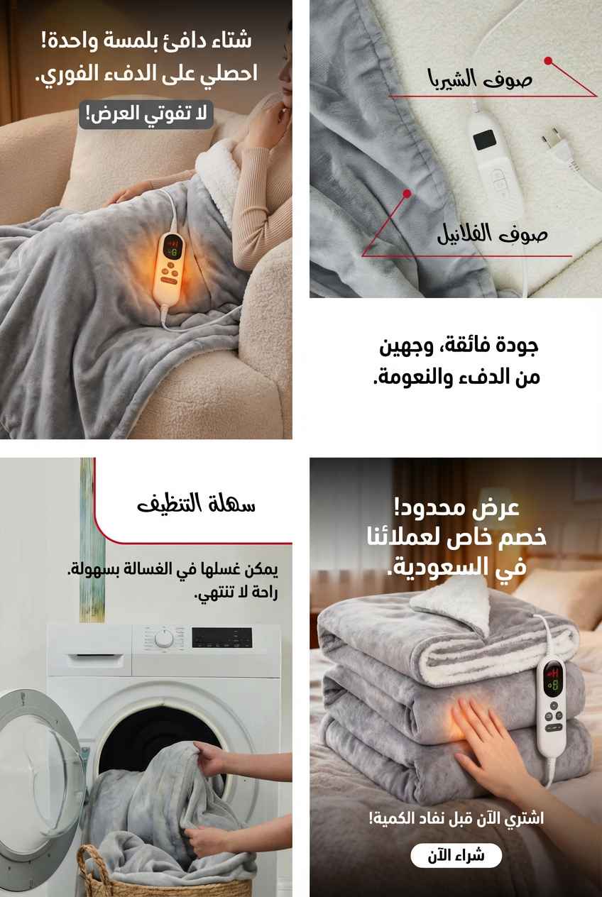 انسى هذا الشعور! تخيل تدخل فراشك وتلاقيه دافي ومريح ينتظرك.. بطانية تسخن في 60 ثانية وتخليك تنام بعمق وراحة! 🌟😴
