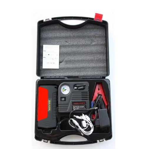 احصل على اشتراك سيارة محمول 3 في 1 – يشحن سيارتك فورًا ومنفاخ إطارات في وقت واحد. جهاز الطوارئ المثالي للسفر والبر، مضمون لعام كامل من وكيل معتمد.