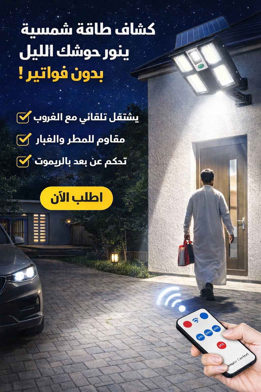 كشاف الطاقة الشمسية لا غنى عنه بالمنزل يوفر لك فاتورة الكهرب يشحن من الشمس، بحساس حركة وريموت وتحمل المطر والغبار، مثالي للمنزل و للحوش والاستراحة
