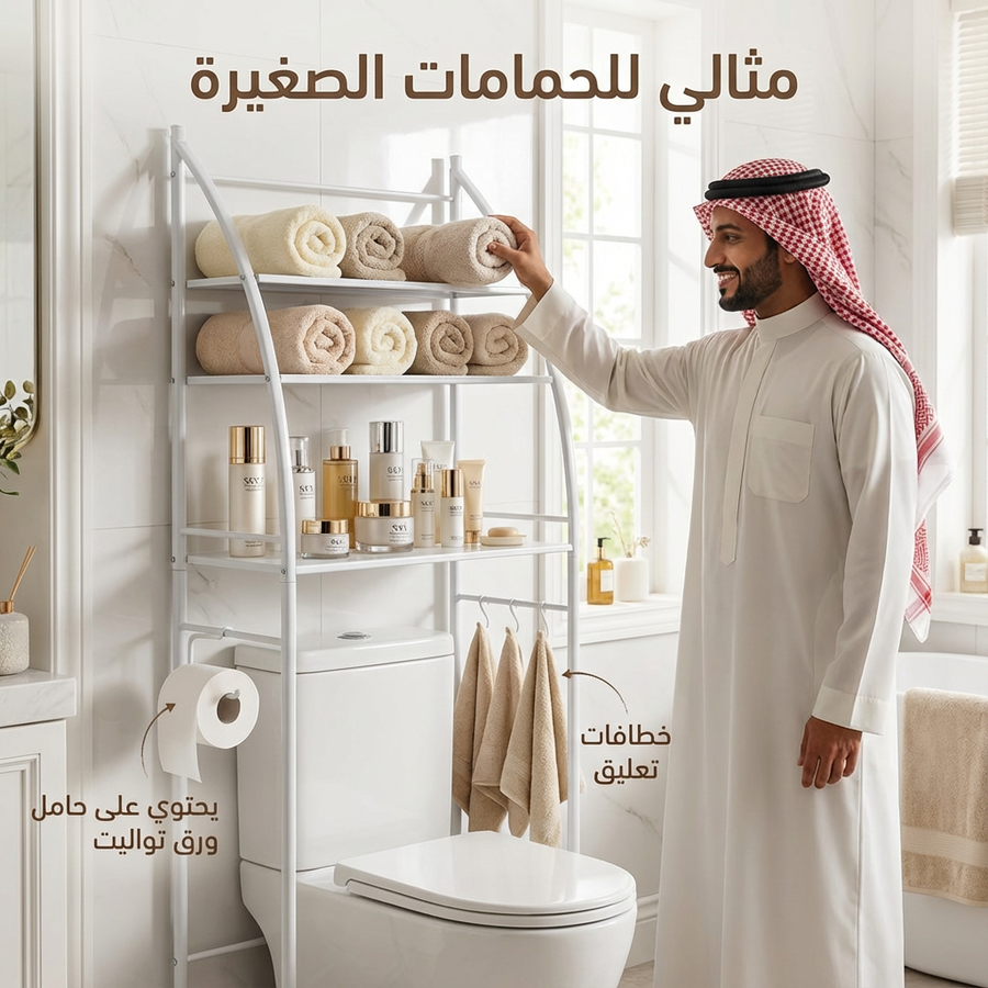 استاند حمام وغسالة بـ ٣ أرفف – يخلي حمامك وغرفة الغسيل مرتبة في دقائق ✨