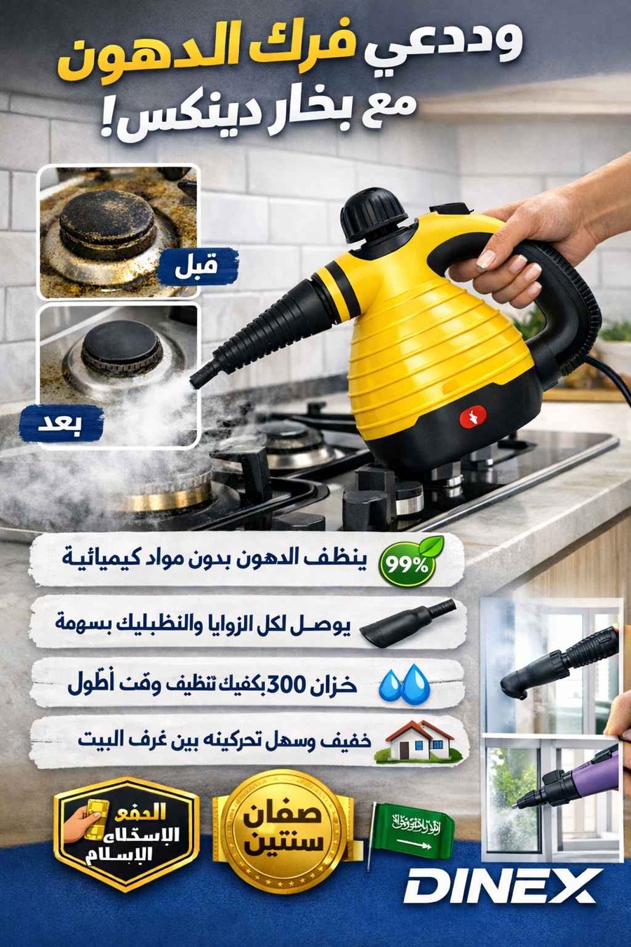 بخار قوي يوصل للزوايا والشقوق اللي يدك ما توصلها بسهولة 🌪